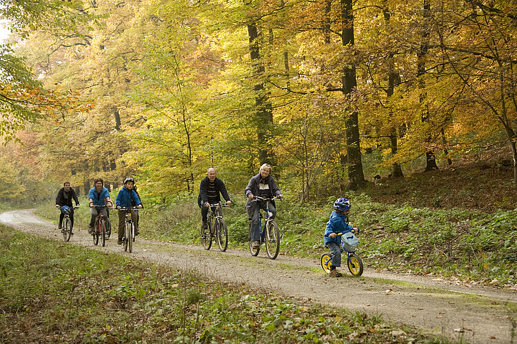 Die Radwege führen teilweise auch entlang von forstlich nicht mehr genutzten Wildnisflächen. Hier werden in der Regel keine Unterhaltungs- und Sicherungsmaßnahmen durchgeführt. Es besteht vor allem bei starkem Wind die Gefahr, dass Bäume umstürzen oder Äste abbrechen können. Bei starkem Wind sollten sie deshalb besonders vorsichtig sein bzw. auf eine Radtour verzichten.